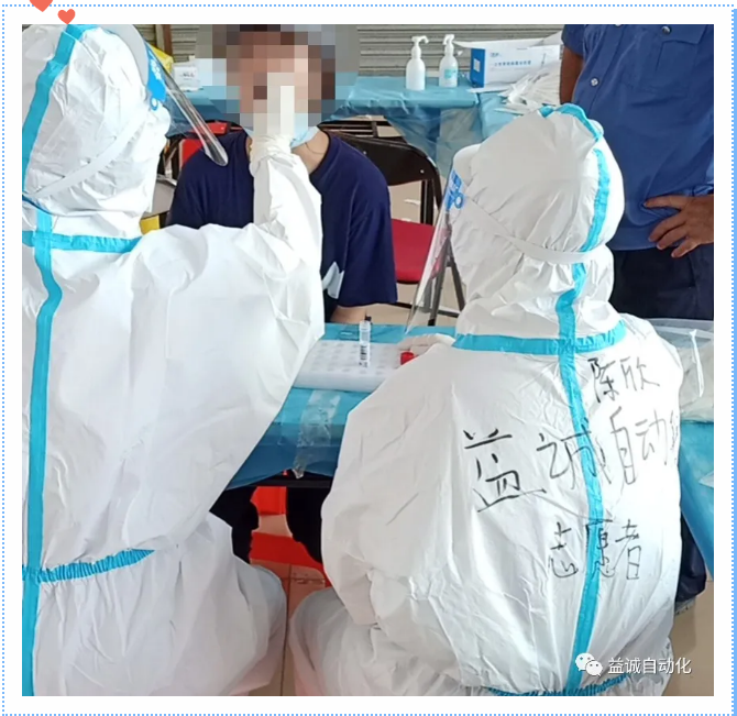 当天上午,益诚自动化临时接到社区请求核酸检测工作人手支援需求后,立即动员,益诚自动化五名志愿者挺身而出,自告奋勇赴往核酸检测现场,支持社区开展全员核酸检测工作。